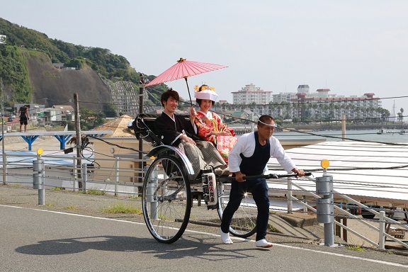 スタジオ撮影の後は、人力車で鎌倉の街をぐるりとひとまわり。