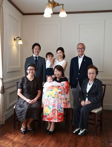 ご家族集合写真では、親子四代、曾祖母様もおられ