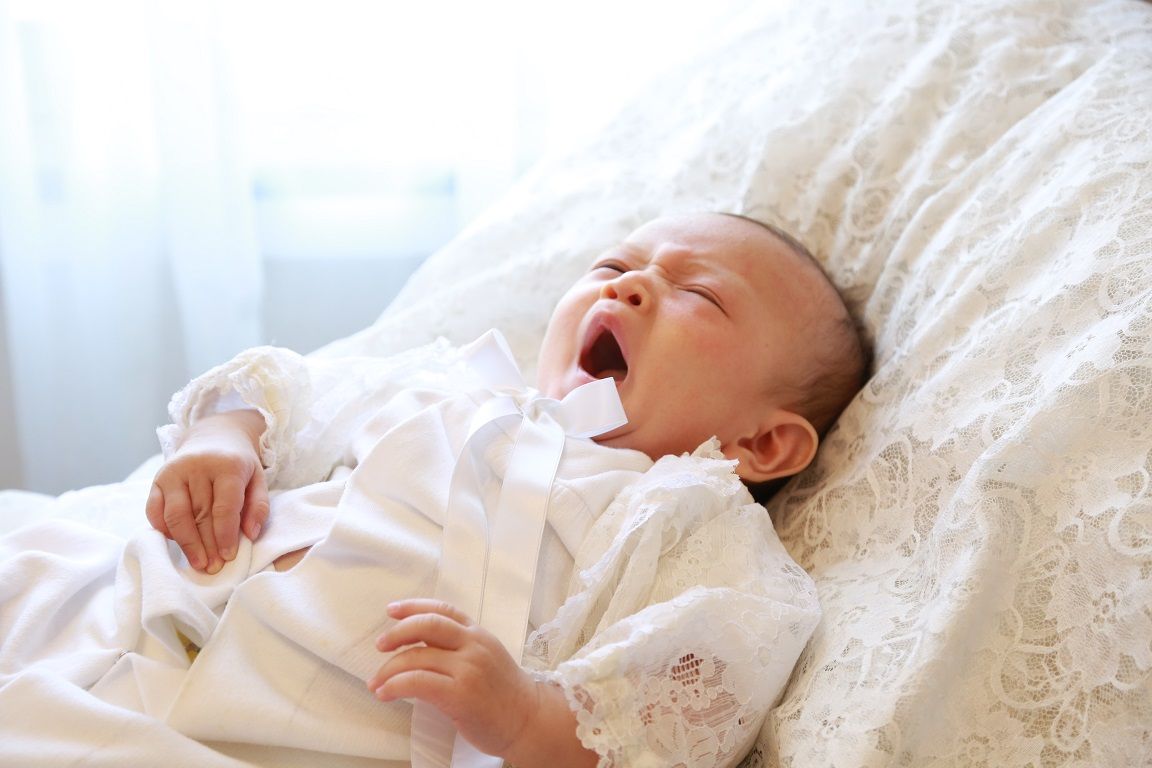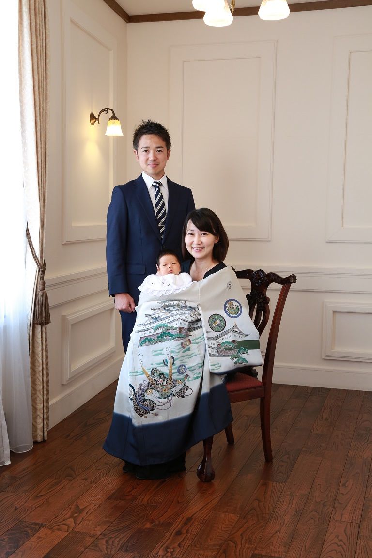 産着の文様は、波頭(なみがしら)に勇壮な鷹。