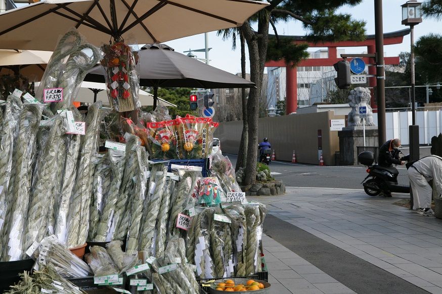 鶴岡八幡宮の舞殿に、お正月用の注連飾りが付けられました。