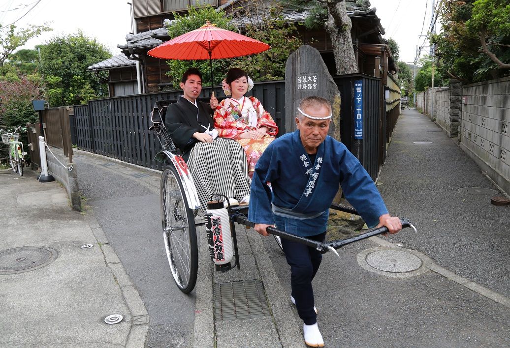 午後は色打掛で。人力車でのロケーション撮影を楽しみました。