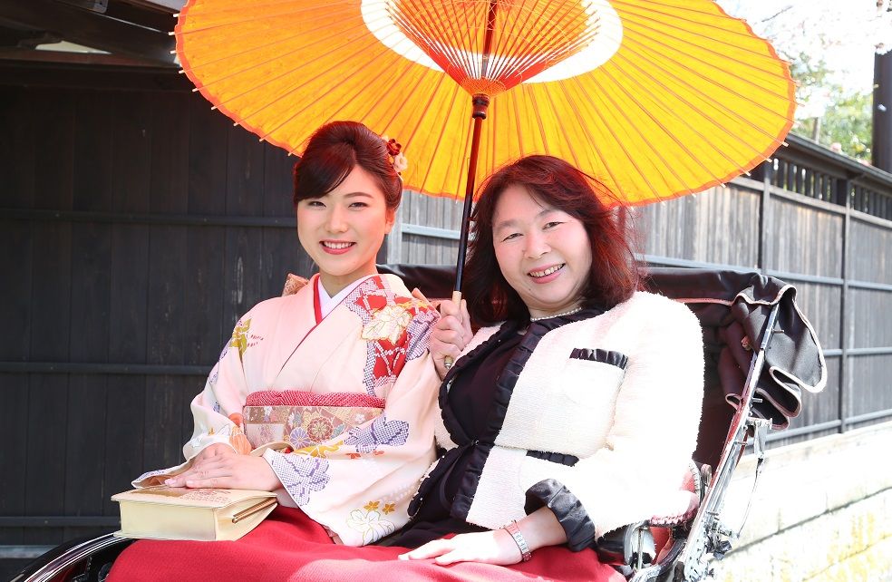 人力車には、お子様1人と大人2名まで、もしくはお子様2人と大人1人の計3名までのご乗車ができます。途中で乗り換えも可能ですから、ご希望ございましたらスタッフにお申し付け下さい。人力車を担当するのは、ご存知 有風亭さん。安全で安心して七五三の撮影をお楽しみいただけます。