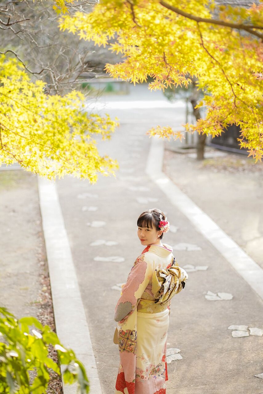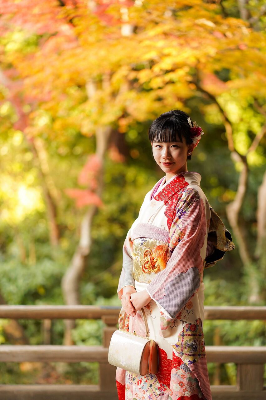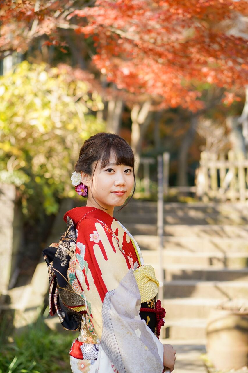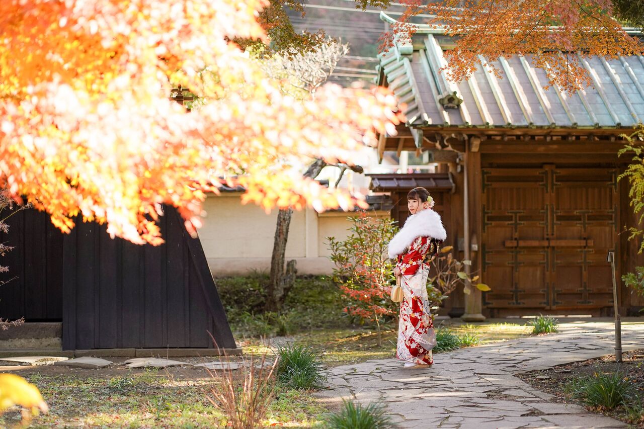 12月も中旬。鎌倉もお正月前の静かなひととき。名刹の紅葉を背景に、成人式前撮り撮影が人気です。