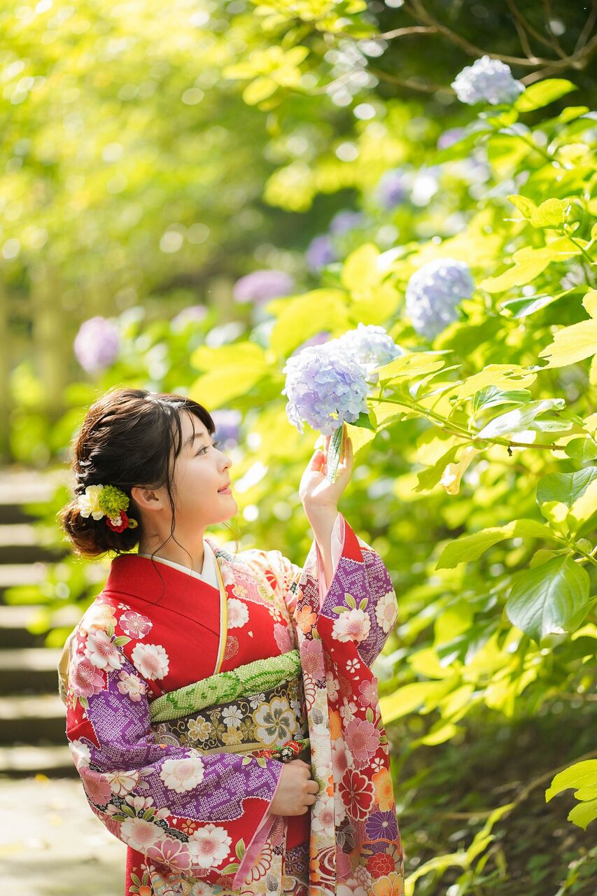 鎌倉の紫陽花で、成人式前撮りロケーションフォトをお考えの方。是非お問い合わせください。