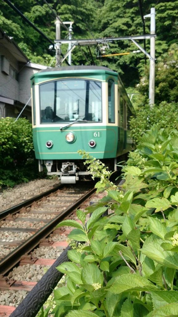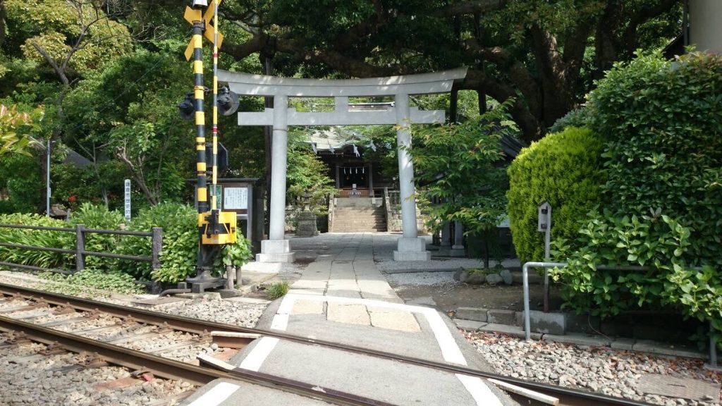 鳥居の真ん前を江ノ電が走るんですよ!