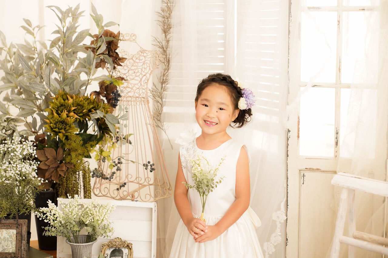 9月末までのオフシーズンなら、お洒落なドレス・タキシードでの撮影もできます! 可愛いお子さまの七五三の思い出をいっぱい残しましょう!