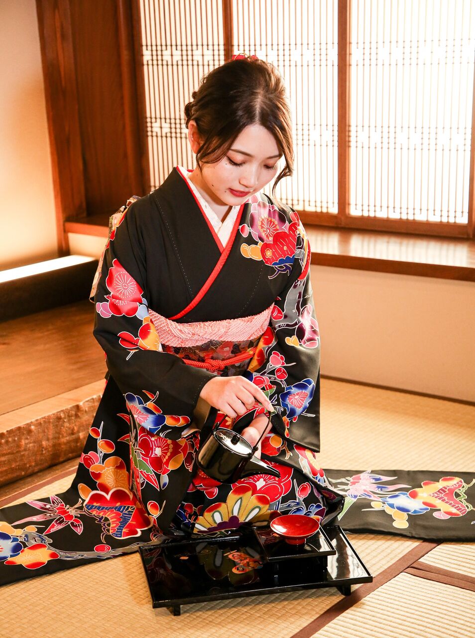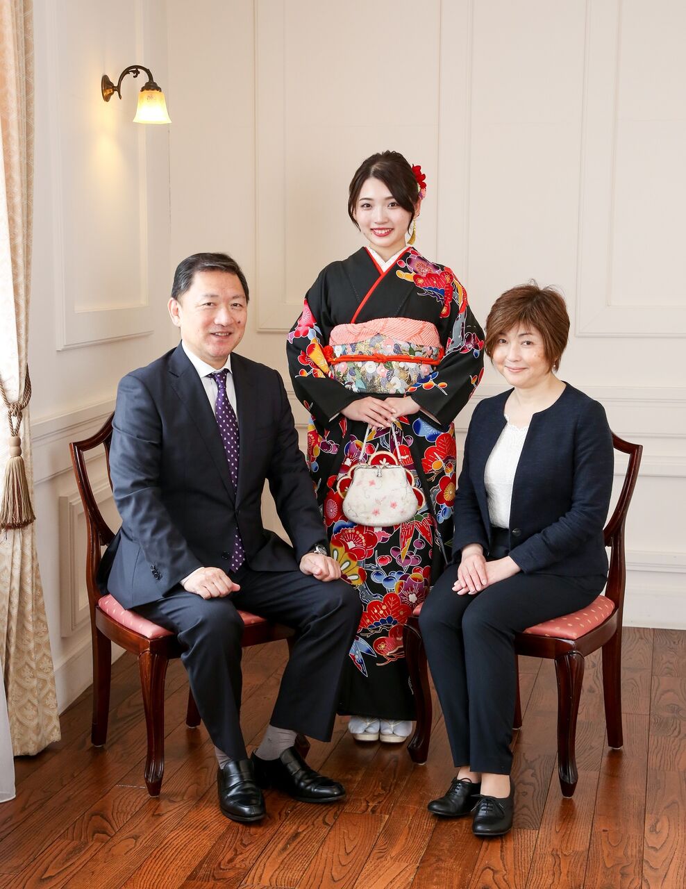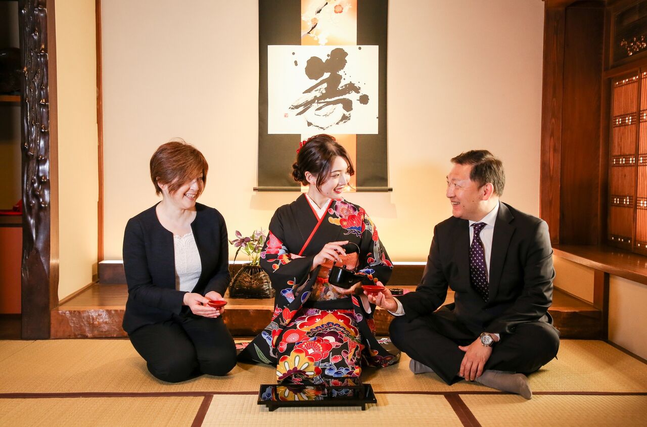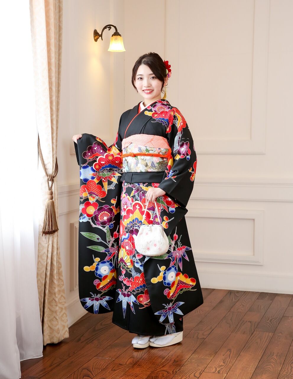 当店では、フォトグラファー以外にアテンドスタッフが1名つきますので、撮影中はお手回り品の管理から、ヘア直しや撮影時の着物の乱れ直しなども行いますので、安心してスムーズ撮影を行うことができます。