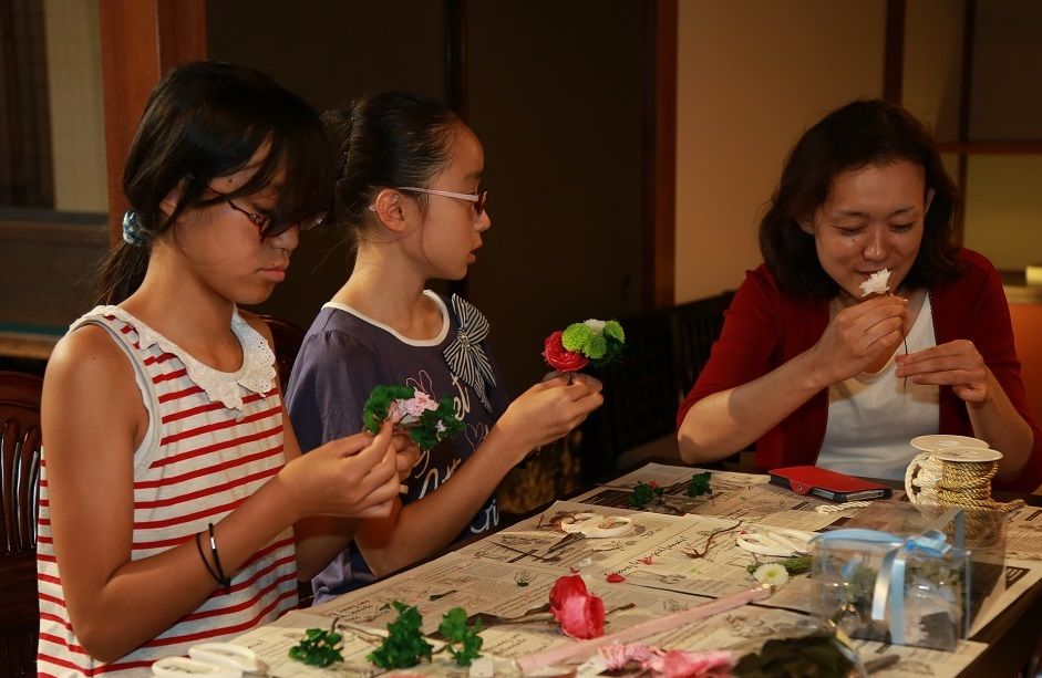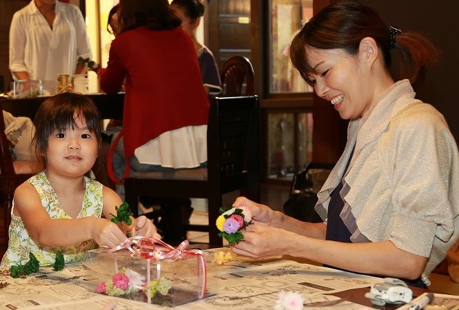 清涼感のある生花のブーケもお持ちいただきました。