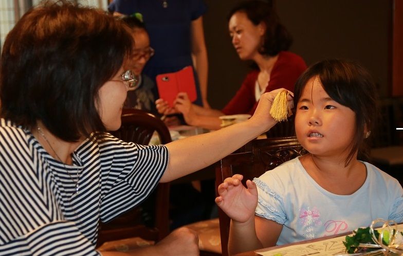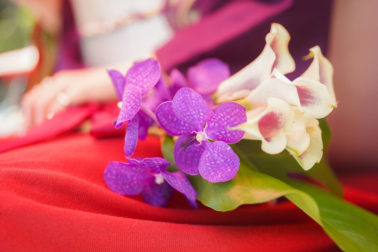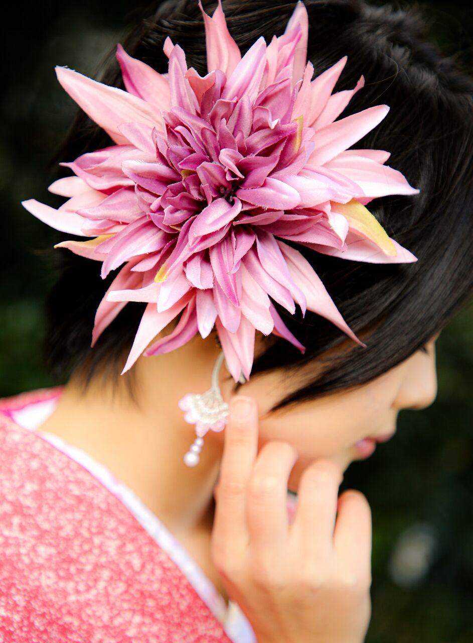 右側の髪飾りは白の胡蝶蘭。美しいですね。
