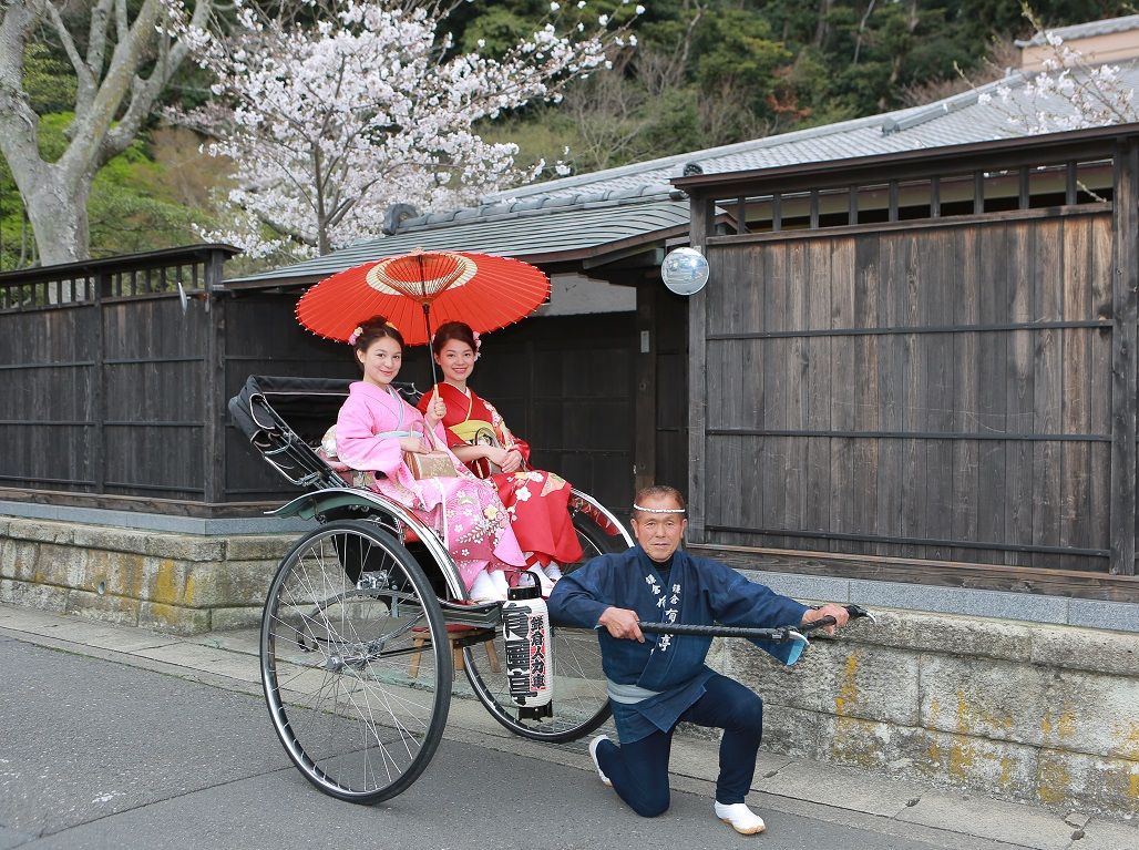 夏は、自家用車を乗り降りして移動するよりも、かえって人力車の方が涼しく移動ができますし、移動中も鎌倉の街中での撮影ができますのでお勧めです。